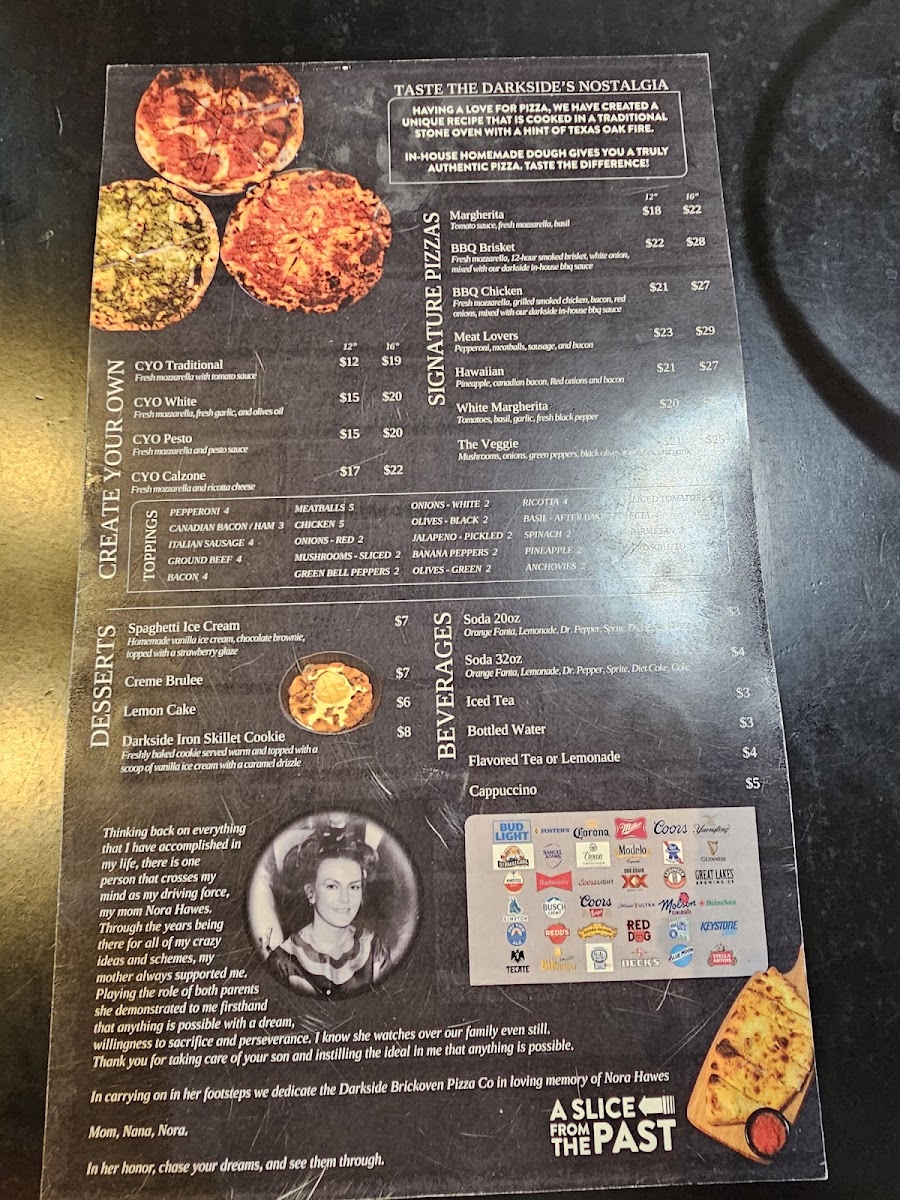 Welcome to Darkside Brick Oven Pizza Co, where the culinary delights take you on a nostalgic adventure! Located in Boerne, TX, this unique eatery combines superb pizza with an imaginative ambiance inspired by classic pop culture. The menu offers a variety of traditional and specialty pizzas, including customizable options and standout dishes like the BBQ brisket and meat lovers pizzas.